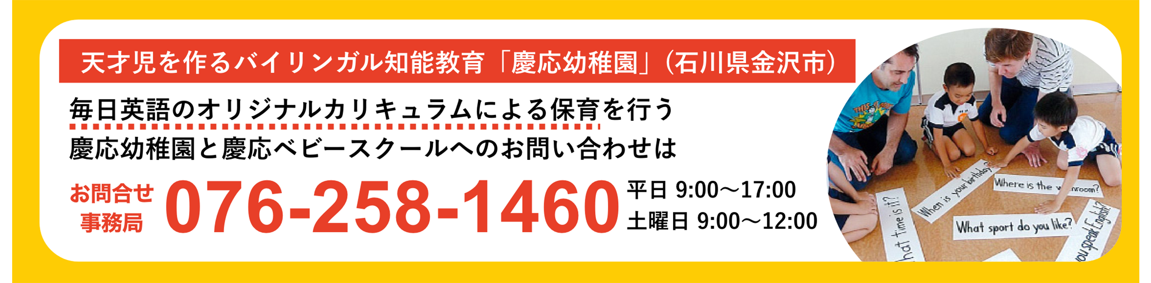 ご相談やご見学など、お気軽にお問い合わせください。慶応幼稚園では、保育内容を事前にご理解